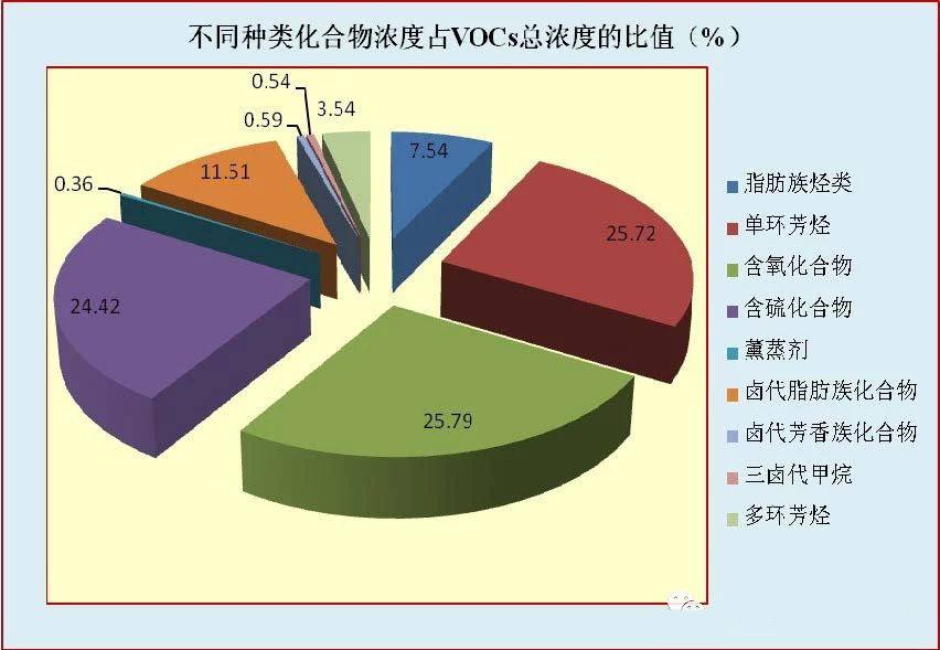 對不同種類VOCs的濃度分析發(fā)現(xiàn),單環(huán)芳烴(25.72%)、含氧化...